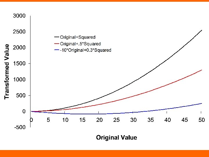 Thus far • Focus on examining and controlling for linear relationships – Each one unit increase in an IV is associated with the same expected change in the DV – Ordinary-least-squares regression can only estimate linear relationships • But, we can “trick” regression into estimating non-linear relationships buy transforming our independent (and/or dependent) variables
