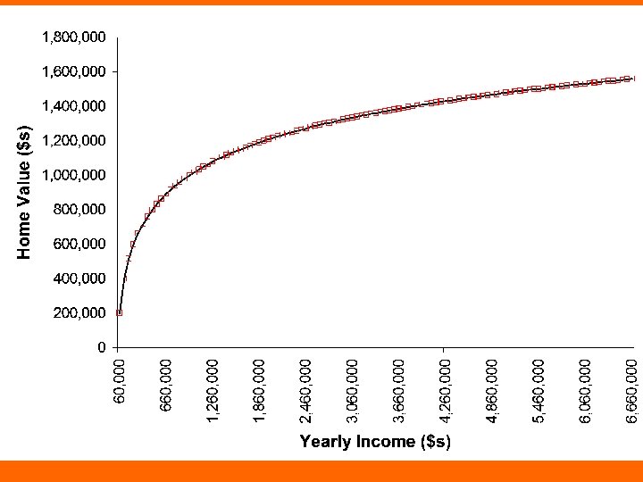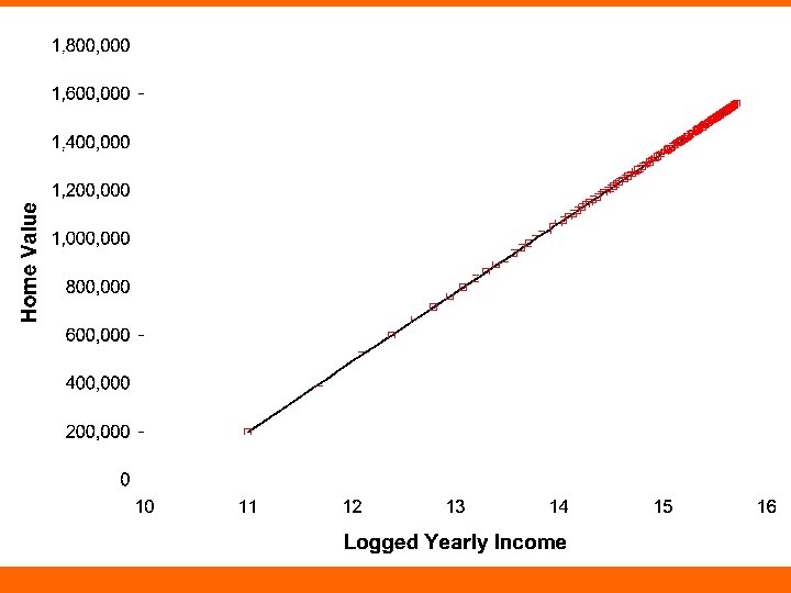 Income and home value • $60, 000/year $200, 000 home • $120, 000/year $400, 000 home • Bill Gates makes about $175 million/year – $175, 000 = 2917 x $60, 000 – Should we expect him to have a 2917 x $200, 000 ($583, 400, 000) home?