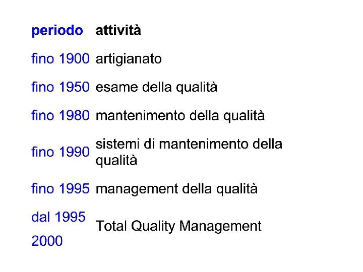 Altre definizioni § Qualità è ciò che vuole il cliente § Qualità è concordanza con le esigenze richieste (Crosby)