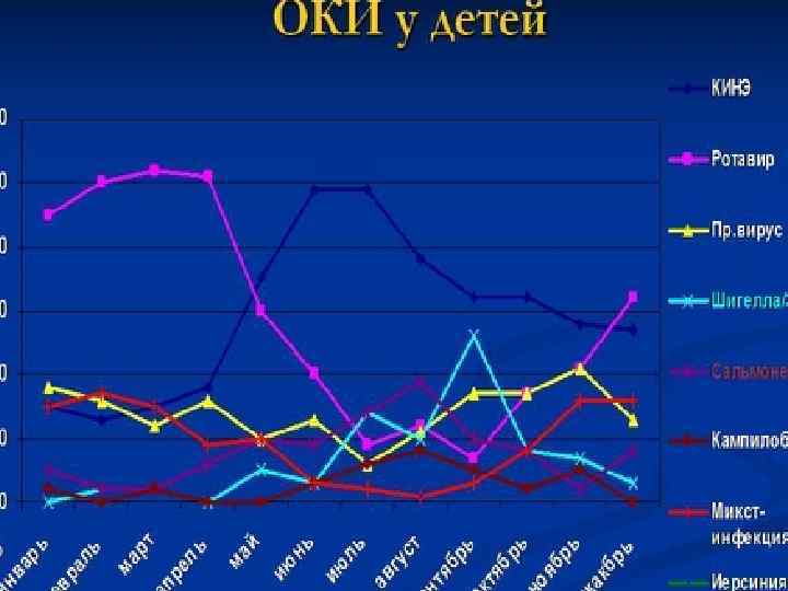 Заболеваемость ОКИ детей и подростков Рязанской области за 2015 г. • • • ОКИ – 3059 случаев. Уточненной – 694 случая Вирусной этиологии 385 – 12% Бактериальной этиологии 309 -10% Кишечные вирусы – этиологические лидеры – составляют до 80% всех случаев ОКИ у детей. ( ВОЗ 2014 г. ).