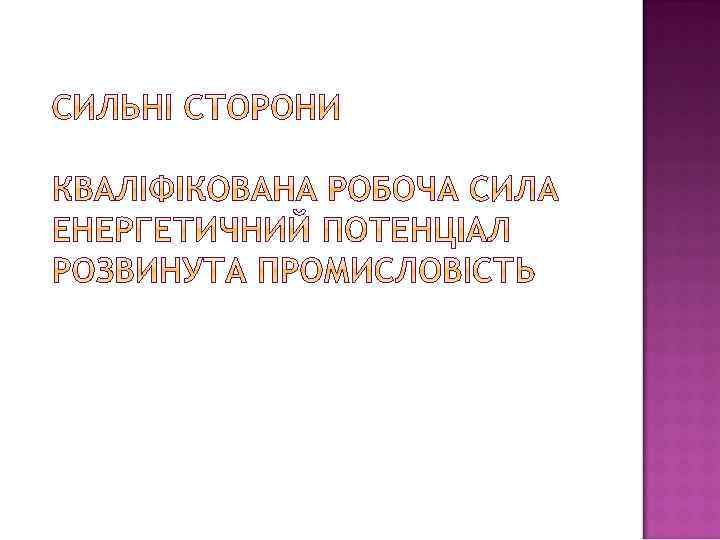 Активне застосування інновацій Наявність природних та земельних ресурсав Споживчій ринок Трудові ресурси Розвиток інфраструктури обл.