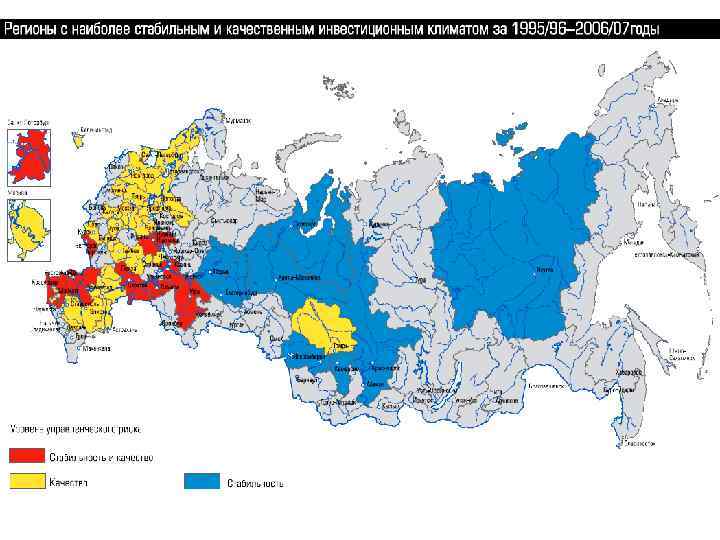 • Более 2/3 регионов снизили за год социальные, финансовые и экономические риски и • только в 40% случаев снизился управленческий риск • Увеличение рисков, связанных с управлением, затронуло целый ряд ключевых центров инвестиционной активности: – – – Москва , Санкт-Петербург, Татария, Башкирия, Свердловская область и ряд других регионов.