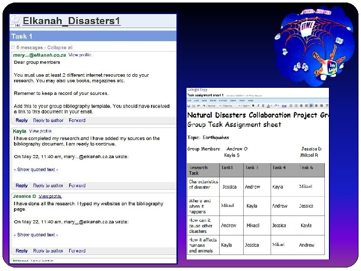 Task 7 Learners copied their information from the blog to their group Wiki page and added pictures. Learners assumed the roles allocated and completed the tasks to finalise their Wiki site. Learners and educators completed the project feedback form.