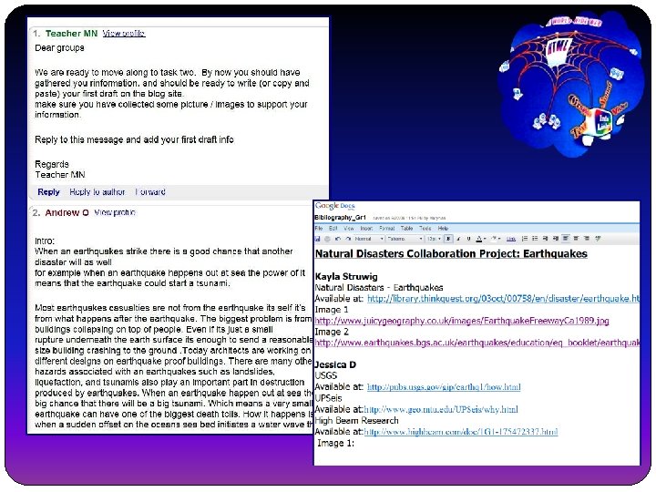 Task 2 Learners wrote their first draft on the group blog site. They collected some pictures to support their information. They recorded all websites used on the Group Bibliography Template.