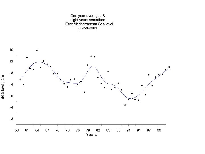 Graph of monthly mean values at Ashdod & Tel-Aviv stations during 1990 – 2000 shows a gradual increase of Mediterranean sea level in the last decade.