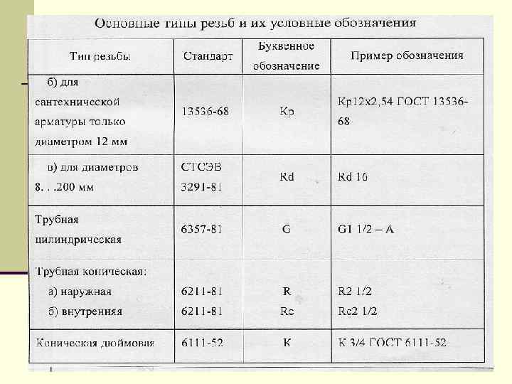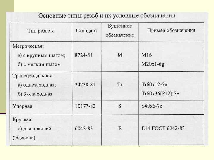 ОБОЗHАЧЕHИЕ СТАHДАРТHЫХ РЕЗЬБОВЫХ ИЗДЕЛИЙ
