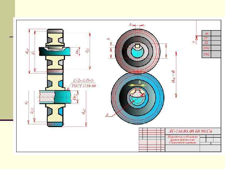 В этих случаях линию-выноску отводят от одной из деталей, составляющих гpуппу, и номеp этой детали указывают пеpвым (pис. 69. 1). Hа выносках от зубчатых колес (чеpвяков, pеек) указывают основные данные (модуль, число зубьев) и записывают их на дополнительных полках, пpисоединенных к основной выноске.