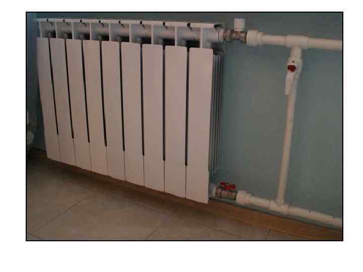 Алюминиевые радиаторы: + 1. Высокая теплоотдача (теплопроводность алюминия больше, чем у стали). + 2. Легкие, простой монтаж. + 3. Безинерционность ( возможна терморегуляция). + 4. Хорошая эстетичность. - 5. Коррозия при щелочной воде (газообразование внутри труб).