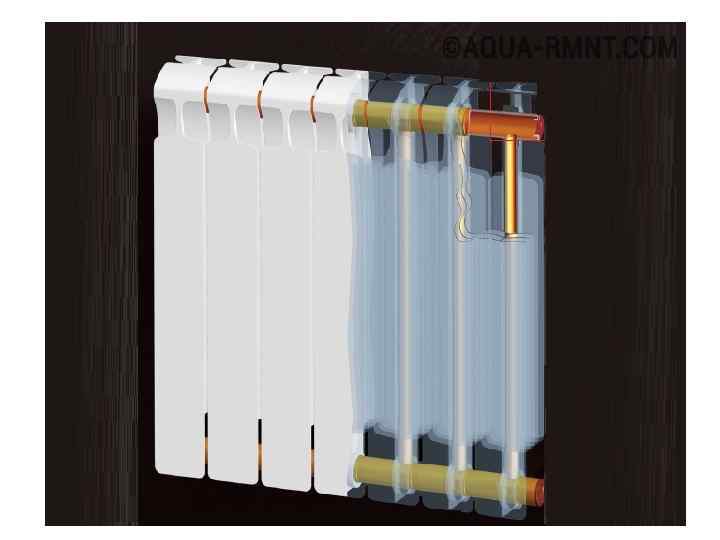 Биметаллические радиаторы состоят из стальной трубы с алюминиевыми ребрами 1. Высокая теплоотдача за счет теплопроводности алюминия 2. Высокая надежность за счет стальных труб ( выдерживает более высокое давление , меньшая коррозия, чем у алюминия).