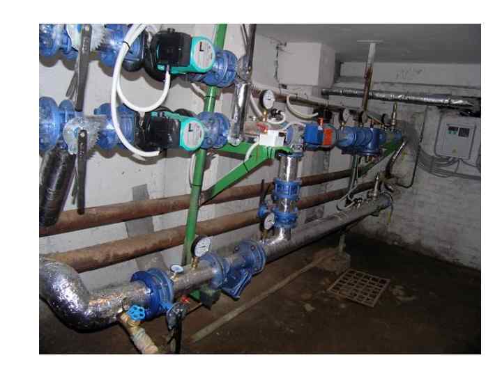 Тепловой узел дома размещен в подвальном помещении