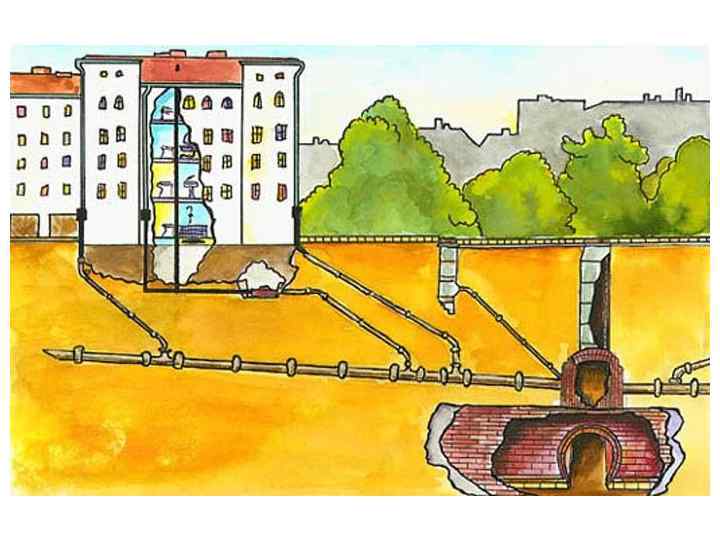 Канализация Использование водопровода в современных домах невозможно без канализации. Современные очистные сооружения обеспечивают полную биологическую очистку воды по технологической схеме. Некоторые станции имеют сооружения доочистки воды, которую затем используют промышленные предприятия.
