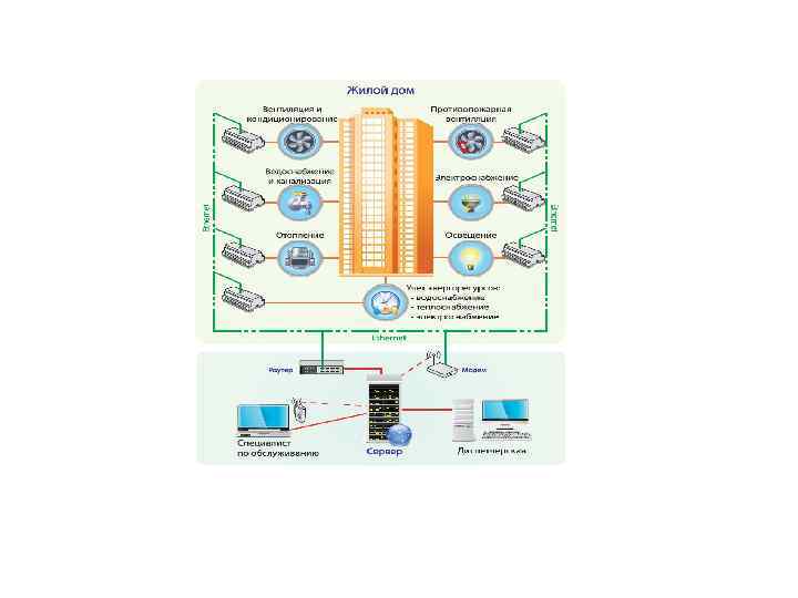 Основные составляющие ИК в доме: • • • Отопление Горячее водоснабжение Холодное водоснабжение Канализация Газоснабжение Электроснабжение Вентиляция и кондиционирование Информационные коммуникации Системы безопасности и другие