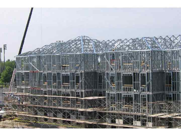 Применение металлоконструкций в строительстве домов В 21 -м веке в массовом жилищном строительстве на смену технологии монолитного строительства приходит технология более высокого уровня с применением металлоконструкций. В настоящее время (2016 г. ) для массового жилищного строительства в России эта технология не применяется, а используется только для строительства по индивидуальным проектам ( для промышленных, административных, торговых и др. зданий).