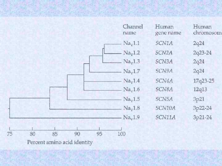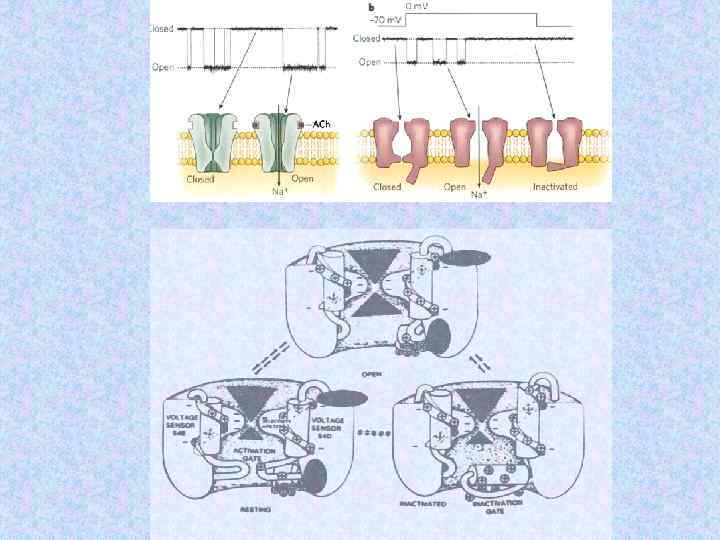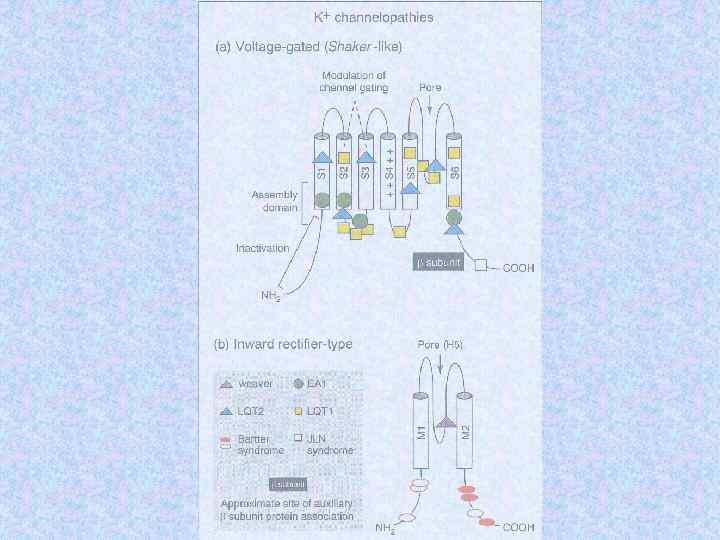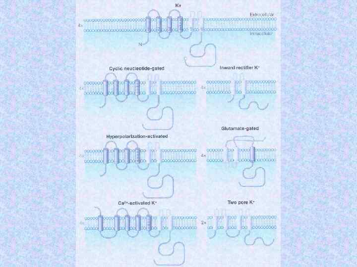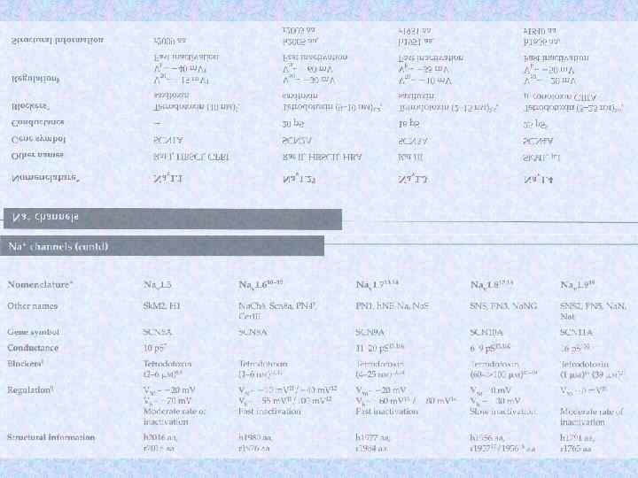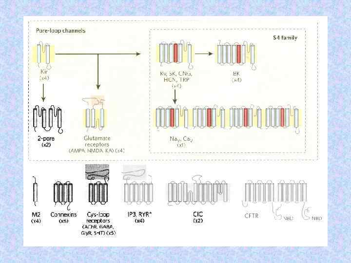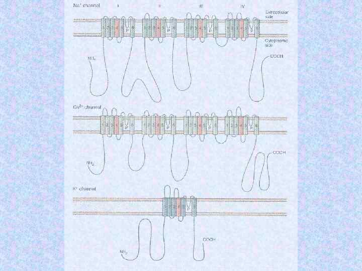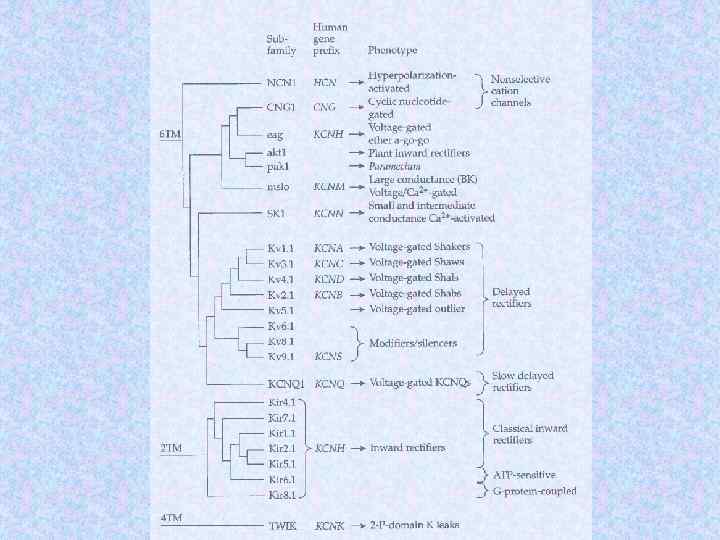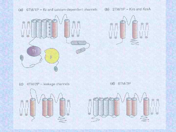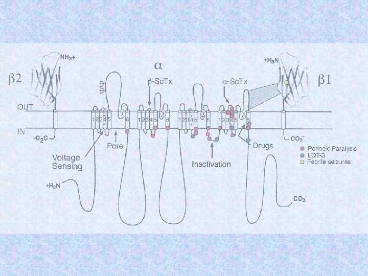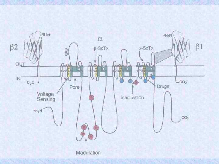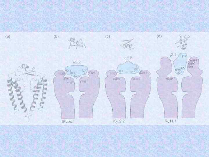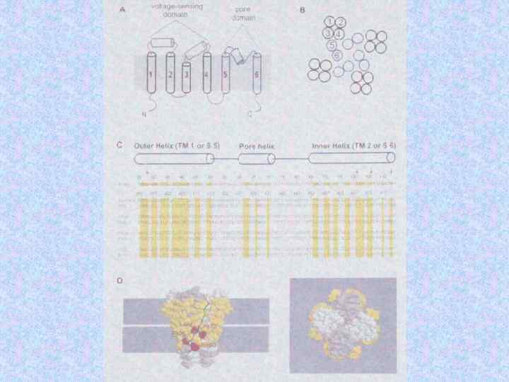 Субъединицы ионных кналов Name Subunit Na channel Na 1. 3 a b 1 b 2 Human or rat brain Number Residues Mass (Da) 1 1 1 1 951 218 215 221 375 24 707 24 144 1 1/1 1 1 1 883 1 106 524 222 212 018 125 018 57 868 25 058 Skeletal muscle a 1 a 2/b b g Delayed rectified Kv 1. 1 a Kvb 1 4 4 495 419 56 541 46 563 KCNQ K channel KCNQ 1 a min K 4 4 676 129 74 698 14 675 BK K(Ca) channel Slo 1 BKb 1 4 4 1 184 191 132 578 21 957 Ca channel K channel