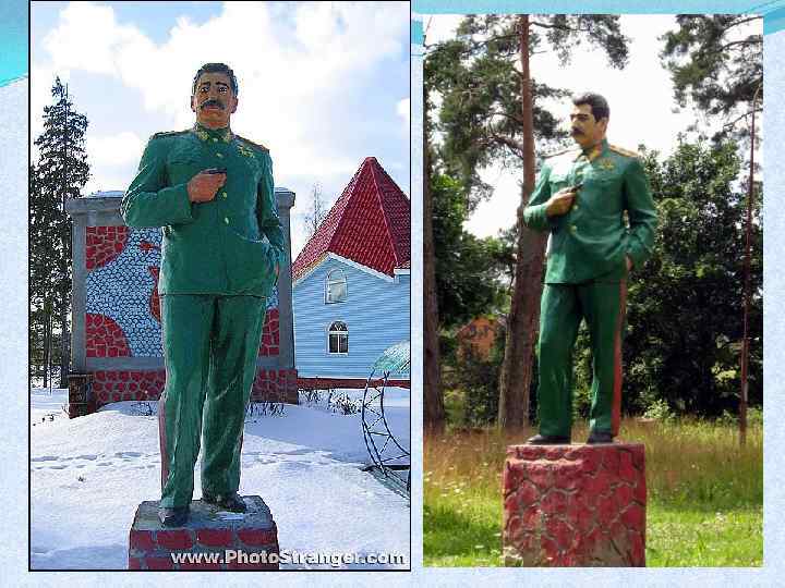 • И все же один «живой» памятник Иосифу Виссарионовичу у нас на Северо-Западе установлен – в поселке Вырица Ленинградской области, около дома Александра Свитова. Больше десяти лет назад хозяин дома его нашел, отреставрировал, покрасил форму ядрено-зеленой краской. Открыл Свитов монумент к 65 -летию победы в Великой Отечественной войне. • – Про Сталина можно разное говорить, – поясняет журналистам свое отношение владелец памятника. – Скажу одно: при нем было много и хорошего.