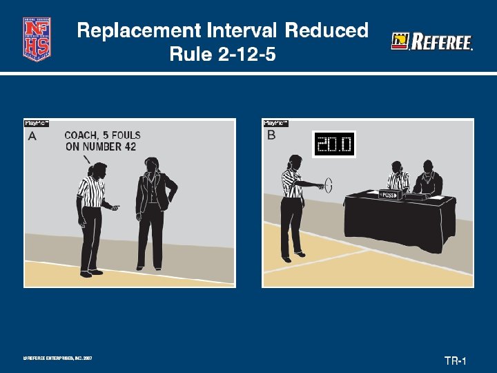 Replacement Interval Changed (2 -12 -5, 10 -5 -3) • Timeframe often used as an “unofficial” time-out. • Interval reduced from 30 seconds to 20 seconds. • Includes: – Disqualified player – Injured player – Player directed to leave the game