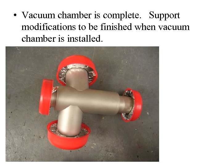 • Vacuum chamber is complete. Support modifications to be finished when vacuum chamber is installed.