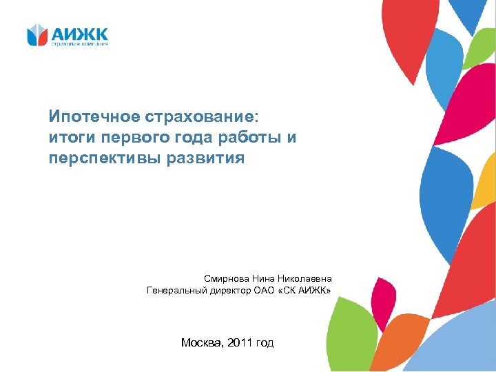 Ипотечное страхование: итоги первого года работы и перспективы развития Смирнова Нина Николаевна Генеральный директор ОАО «СК АИЖК» Москва, 2011 год