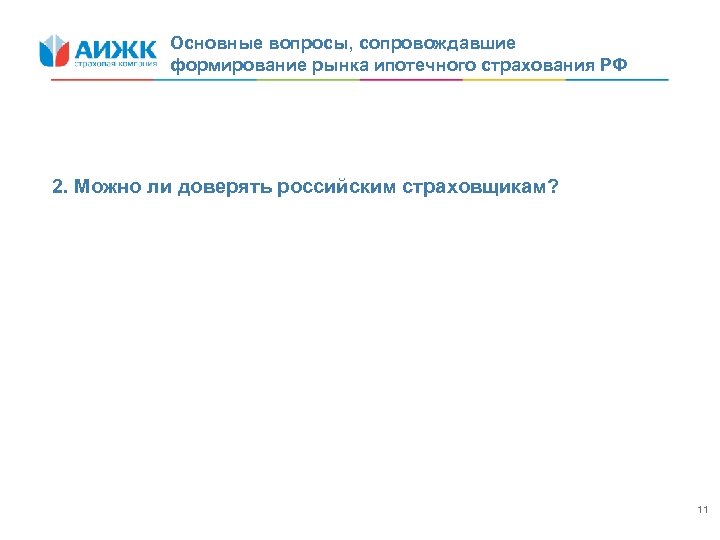 Основные вопросы, сопровождавшие формирование рынка ипотечного страхования РФ 2. Можно ли доверять российским страховщикам? 11