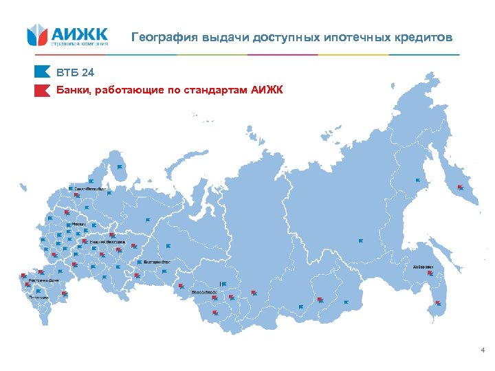 География выдачи доступных ипотечных кредитов ВТБ 24 Банки, работающие по стандартам АИЖК 4