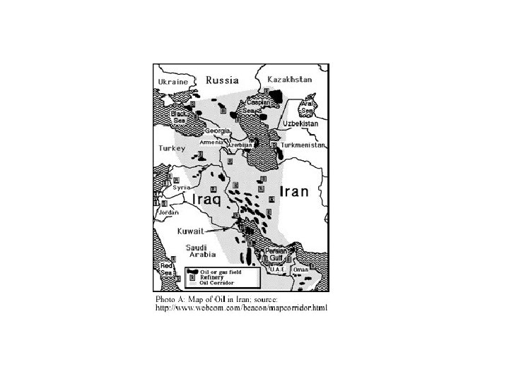 Discussion • Israel and Palestine • Foreign intervention, past and present • Variety of rule: democracies(Israel), monarchies (SA), national security states (Egypt, Syria), theocracies (Iran), destabilized regimes (Iraq, Lebanon) • Water and fossil fuels: strategic interests for Middle East and world