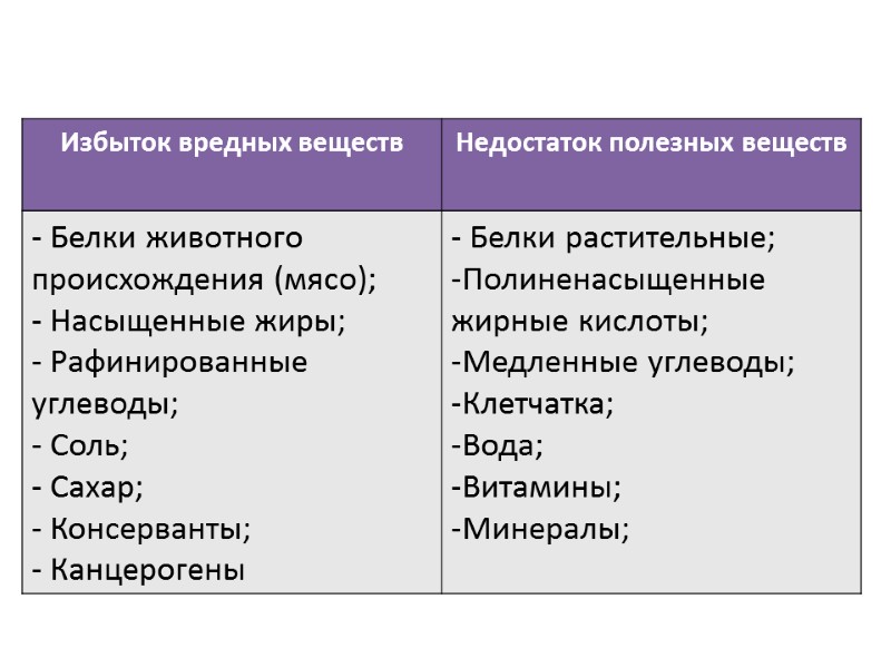 Омега 3 жирная кислота Характеристики: Обновления клеток организма Незаменимая кислота, не синтезируется в организме Недостаток Омега 3: Нарушения сердечно-сосудистой деятельности организма Депрессия Сухость кожи Преждевременное старение Потеря памяти Источники: Рыба, яйца, масло льняное, ореховое