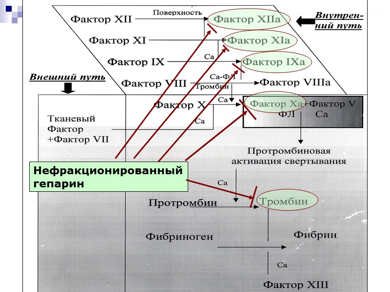Противопоказания к гепарину Геморрагические диатезы (гемофилия, тромбоцитопения и др.) Геморрагический инсульт Язва желудка и ДПК Тяжелая АГ (САД > 180 мм рт.ст.) Черепно-мозговая травма Хирургические операции на ЦНС Тяжелая печеночная и почечная недостаточность Аллергия ОКС без стойкого подъема ST: антикоагулянты