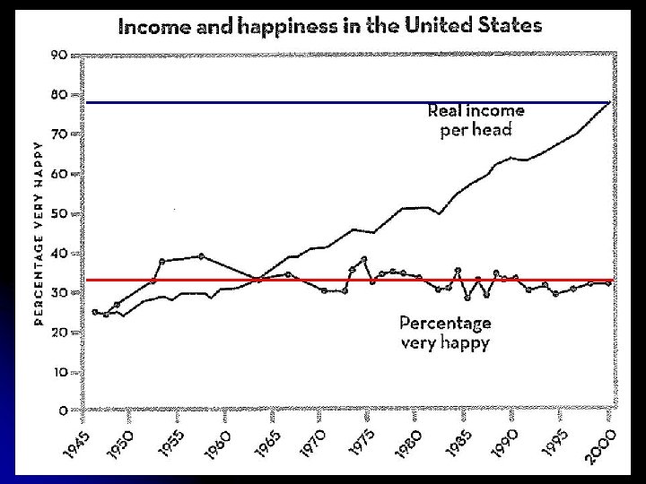 Does $$ Make Us Happy? 1) 2) l l Reducing the margin of discontent makes people happier Economic growth helps consumers to reduce their margin of discontent If 1. and 2. are both true, then why have we gotten richer… but not happier? Evidence?