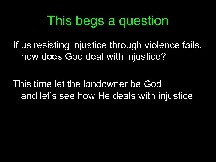 This begs a question If us resisting injustice through violence fails, how does God deal with injustice? This time let the landowner be God, and let’s see how He deals with injustice