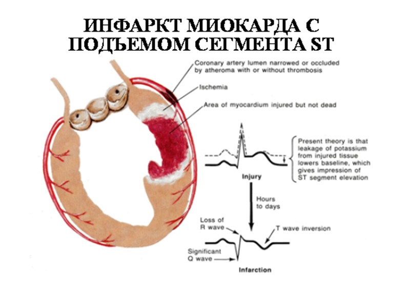 Инфаркт миокарда. Атеросклероз и тромбоз коронарной артерии Тромб Инфаркт миокарда без зубца Q Инфаркт миокарда с Q зубцом