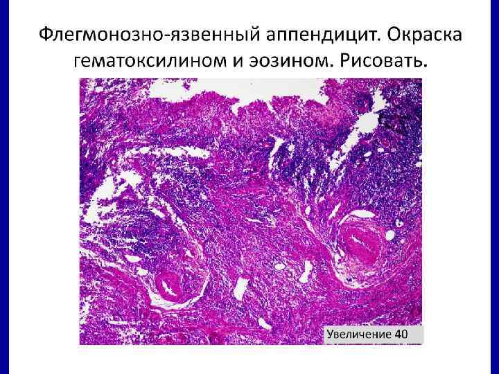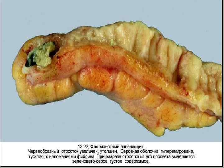 Патогенез: Секреция слизи в закупоренном отростке приводит к нарастанию давления содержимого на стенки аппендикса → сдавление вен, дренирующих отросток → ишемию и некроз → происходит размножение местной микробной флоры