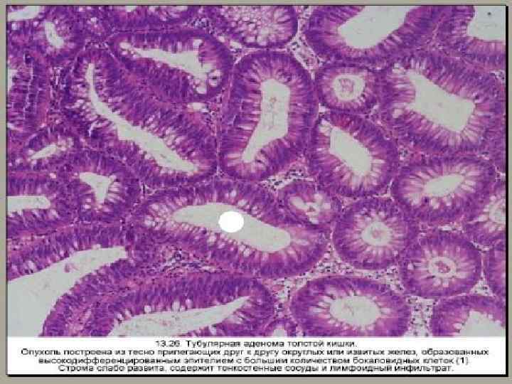В толстой кишке выделяют три вида аденом: - тубулярная - ворсинчатая (виллёзная) - тубуловорсинчатая (тубуловиллёзная)