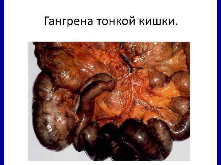 Термины, описывающие это состояние: - гангрена кишки, - инфаркт, - геморрагический некроз, - некротизирующий энтероколит, - ишемический колит, - «ишемическая болезнь кишечника» .