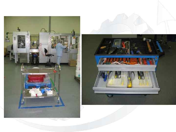 2 С: Создание «своих мест» Рациональное размещение предметов в рабочей зоне должно: § § Обеспечить минимальные передвижения оператора Исключить потери времени на поиски инструмента Обеспечить безопасность при выполнении работ Обеспечить максимальную визуализацию предметов