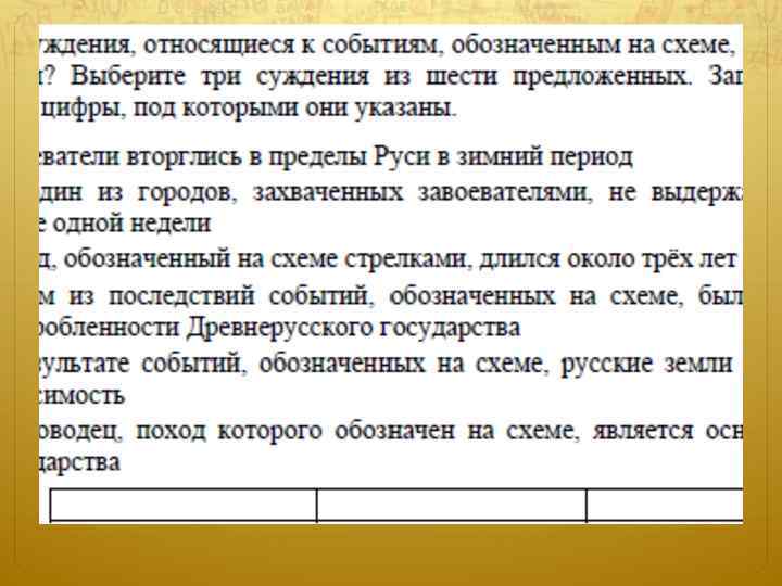 Некорректность формулировок заданий. Пример. Текст источника. Из произведения древнерусской литературы С 2. Какое значение в отечественной истории имеют описанные события? С каким процессом в развитии государства связаны эти события? Назовите не менее трех положений. Ответ: Стояние на реке Угре означало конец зависимости Руси от Орды Возросла роль Москвы как центра объединения русских земель События связаны с объединением русских земель и образованием единого Российского государства