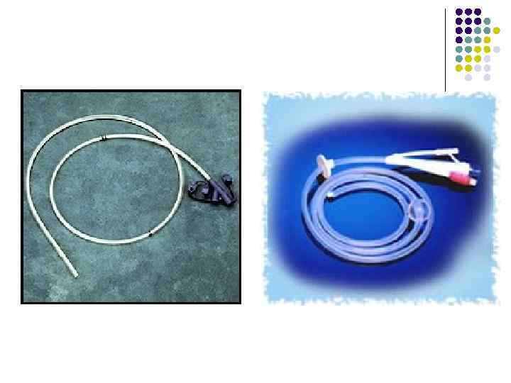 Виды зондов для энтерального питания l l Назогастральные и назоэнтеральные зонды. l В настоящее время преимущественно используются тонкие пластиковые (силиконовые и полиуретановые) зонды. Они могут несколько различаться по конструкции: иметь разноуровневые отверстия, отводы, быть одно- или двух- или трехпросветными, снабжаться оливами или утяжелителями, которые способствуют их введению. При отсутствии промышленно выпускаемого зонда возможно использование пластиковой трубки соответствующего диаметра. Применение толстых упругих желудочных зондов оправдано лишь как временный доступ, поскольку эти зонды быстро вызывают развитие пролежней. Перкутанные зонды. l Перкутанные зонды используются при доступах, создаваемых оперативным путем: фарингостомии, шейной эзофагостомии, гастростомии, еюностомии. Наиболее популярным и безопасным методом последние годы является перкутанная (чрескожная) эндоскопически контролируемая гастростомия. Она выполняется с помощью разовых хирургических наборов.
