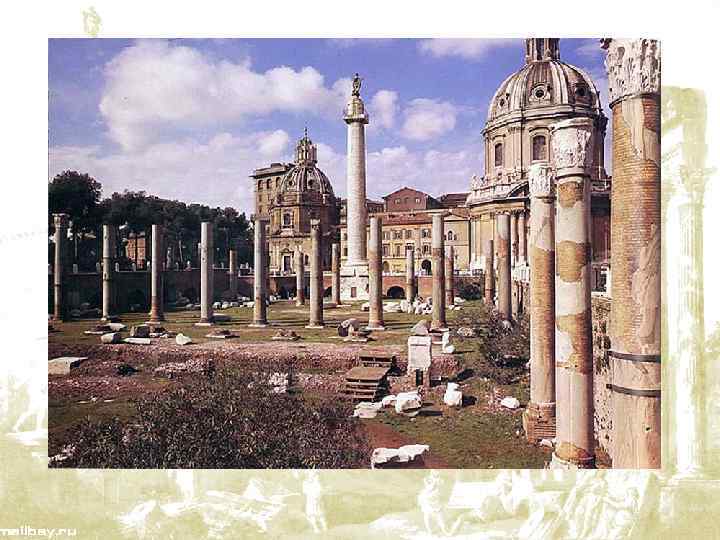 Императорские форумы (fori imperiali) — ансамбль памятников архитектуры в Риме Их строительство шло примерно 150 лет (с 46 г. по 113 н. э. ) в период Императорские форумы не являются частью Римского форума или же старой Республиканской площади. Часть императорских форумов погребена под улицей Виа деи Фори Империали. Форум Цезаря ( Forum Cæsari), 46 г до н. э. Форум Августа ( Forum Augusti), 2 г до. н. э. Храм Мира (Templum Pacis) и Форум Веспасиана ( Forum Vespasiani), 75 г. Форум Нервы ( Forum Nervæ), 98 г. Форум Траяна ( Forum Traiani), 112 -113 г.