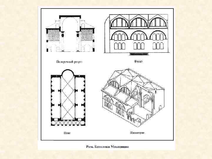 1. Круглый цилиндрический (бочарный) свод; 2. Сводчатое (крестовое) перекрытие