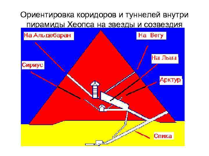 Ориентировка коридоров и туннелей внутри пирамиды Хеопса на звезды и созвездия