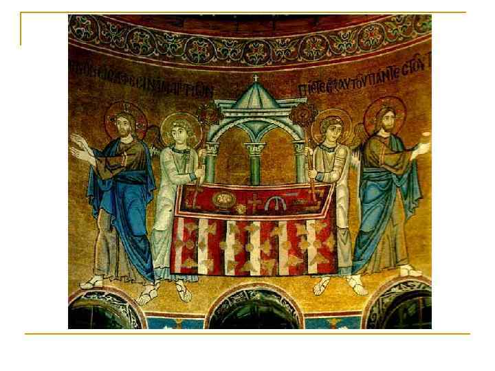 Сцена Евхаристия – это причащение апостолов хлебом и вином, символизирующим тело и кровь Христа. Слово переводится как «благодарение» .