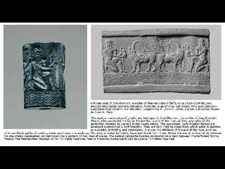 Аккадская глиптика. XXIV-XXII в. до н. э. 1. изображение Эйа-Энки 2. Битва богов