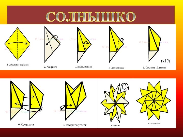 ИСПОЛЬЗУЕМАЯ ЛИТЕРАТУРА И ССЫЛКИ НА http: //yourorigami. info/2008/01/26/istoriya-proisxozhdeniya-origami. html САЙТЫ http: //origami-school. narod. ru/page_03. htm http: //oriart. ru/ http: //www. origama. ru/ http: //yourorigami. info/category/blog/sxemy http: //www. origami. ru/mod/i_clas. htm http: //drevo. sumy. ua/origami/Istoriya-origami. html http: //www. origama. ru/diagrams/star_sun/ http: //iz-bumagi. com/index. php/liliya http: //www. klio-elena. ru/origami/orig. htm http: //edu. of. ru/school 33 tayga/default. asp? ob_no=61718 http: //www. russika. ru/ef. php? s=4267 1· Коротеев И. А. Оригами для малышей. М, «Просвещение» , 1996 2. Сержантова Т. Б. 366 моделей оригами. М, «Айрис Пресс» , 2005 3. Афонькин С. Ю. , Афонькина Е. Ю. Оригами. Игры и фокусы с бумагой. С-Пб, «Химия» , 1994 4. Черенкова Е. . Ф. Оригами для малышей. М. , Рипол классик ДОМ 21 век, 2006