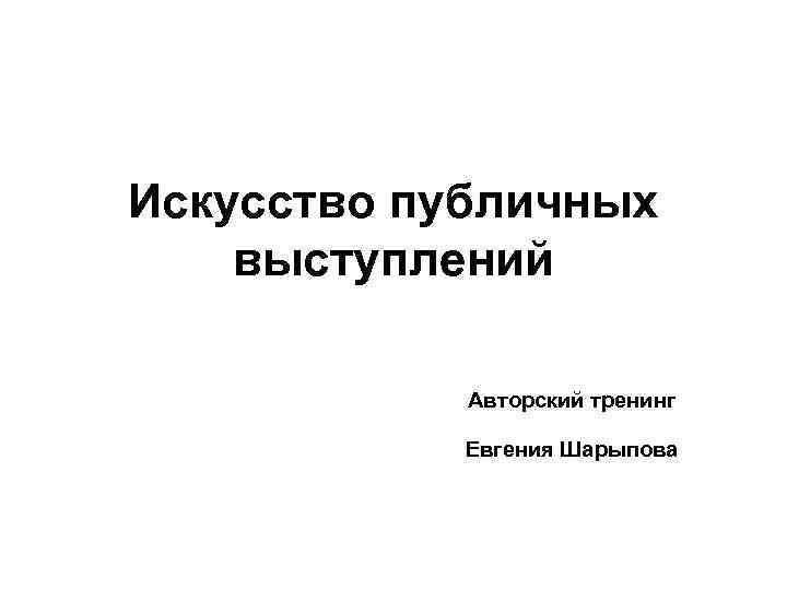 Искусство публичных выступлений Авторский тренинг Евгения Шарыпова