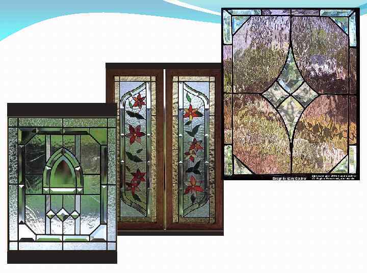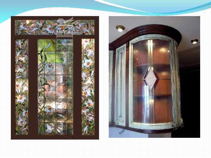 Витражами называются прозрачные картины, рисунки, узоры, выполняемые из стекла или на стекле. Они обычно устанавливаются в световых проемах – окнах, дверях, фонарях. В наше время, в связи с усовершенствованием технологий художественной обработки стекла, расширено и понятие «витраж» . Витражом называют любое декоративное стеклянное заполнение оконных и дверных проемов, фонарей, плафонов, сводов, куполов, сплошных плоскостей стен и даже специальных украшений , художественных изделий. Отражая в своих изображениях характер и назначение сооружения и дополняя его художественный образ, витражи играют значительную роль в оформлении интерьера.