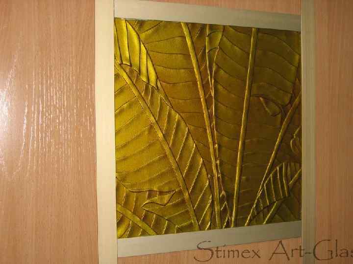 Техника Кастинг, известная у нас как “муранское стекло". Для отливки витражей из него используются металлические формы, в нижней части которых есть рельефные углубления. В эти углубления заливается расплавленное цветное стекло, которое затем покрывается слоем прозрачного стекла. Но в отличие от стекла в технике “спекания" рисунок на “муранском стекле” ограничен той металлической формой, с помощью которой оно было изготовлено.