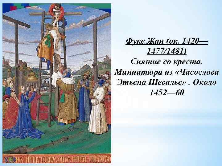 Фуке Жан (ок. 1420— 1477/1481) Снятие со креста. Миниатюра из «Часослова Этьена Шевалье» . Около 1452— 60
