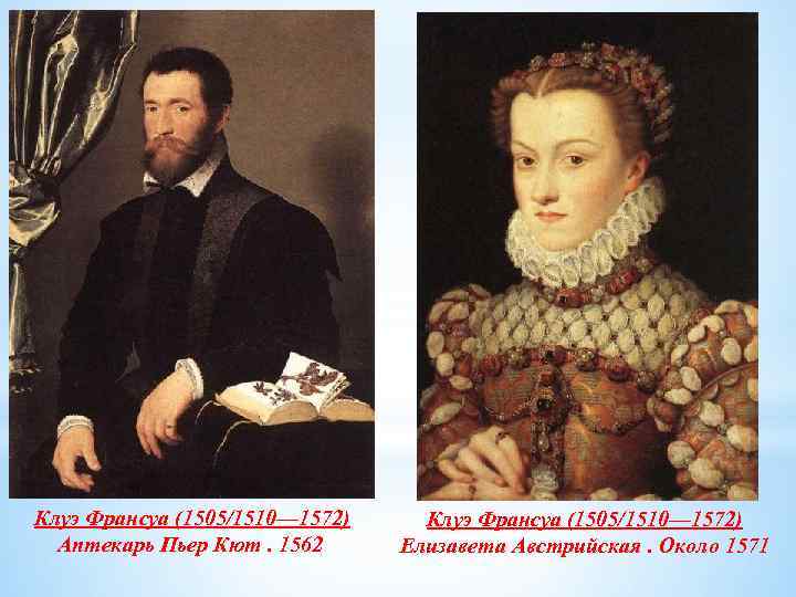 Клуэ Франсуа (1505/1510— 1572) Аптекарь Пьер Кют. 1562 Клуэ Франсуа (1505/1510— 1572) Елизавета Австрийская. Около 1571