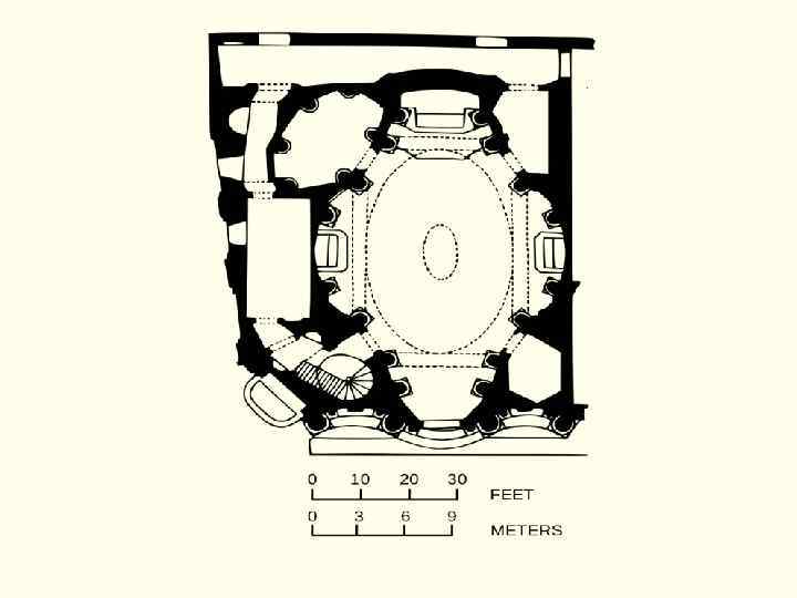 • В интерьере план пола продолжается в форме перекрытия. Основание и купол сливаются так, что ребра купола, продолжающие линии пилястр, кажется поднимаются прямо с пола. • Эти черты архитектуры Борромини, приводившие в изумление его современников, стали характерными чертами позднего барокко и рококо.