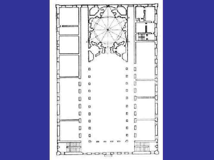 • Виньола и • Джакомо делла Порта. Церковь Иль Джезу. 1575 • Отказ от центрической схемы Высокого Возрождения. • Возвращение к базиликальному типу раннехристианских церквей Рима.