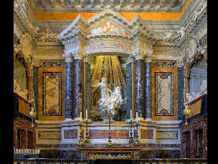 • Баро кко (итал. barocco — «странный» , «причудливый» ; порт. perola barroca — «жемчужина неправильной формы» ) — стиль европейской культуры 17 -18 веков • Сформировался в Риме под влиянием контрреформации Основные черты: • Обращение к эмоциям и воображению зрителей • Напряжённая динамика образов • Стремление к величию и пышности • Создание ансамблей (городские и дворцовопарковые ансамбли, опера)